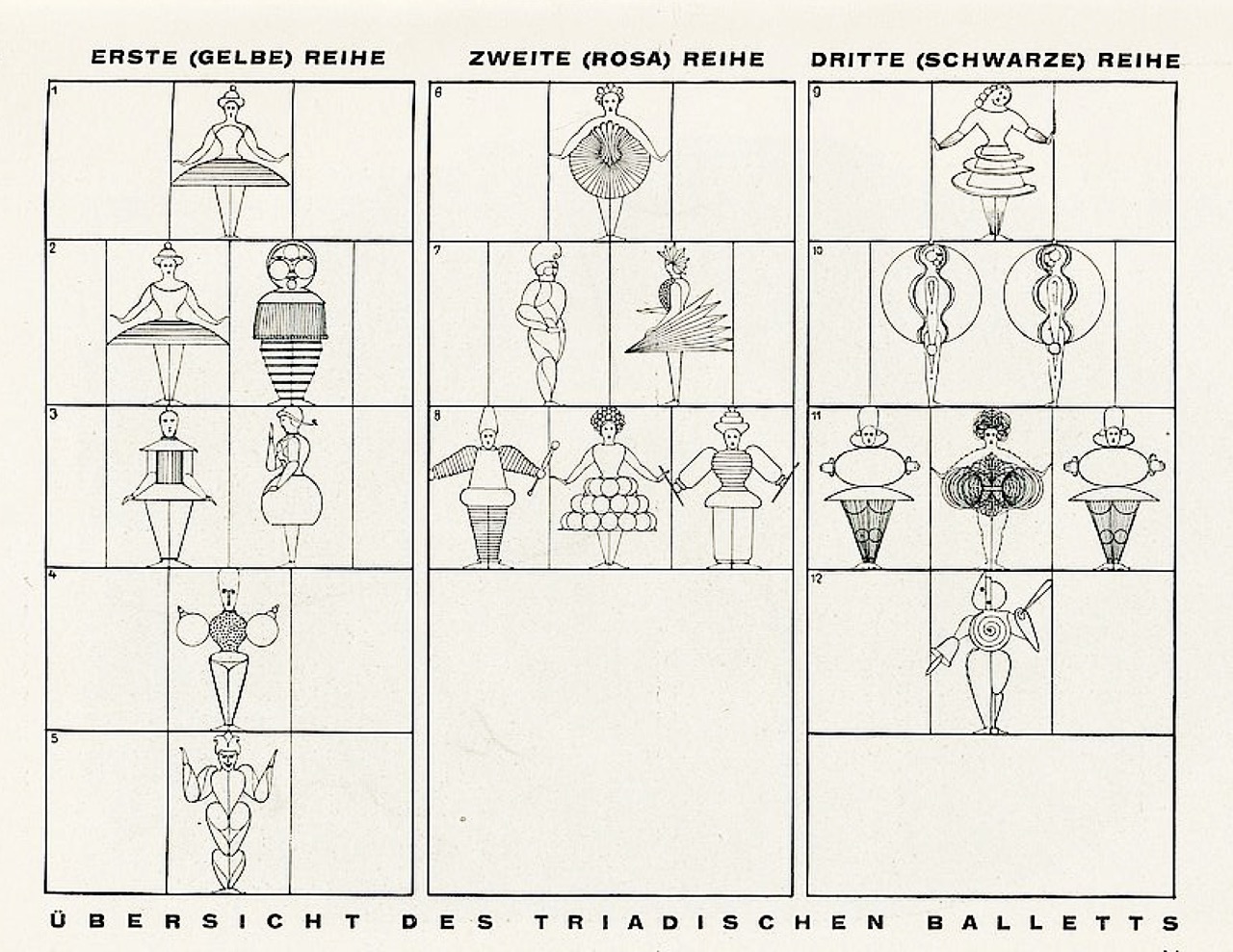 5/Figurenplan für das Triadische Ballett, Blatt 2 aus dem Regieheft für Hermann Schergen, Autor: Oskar Schlemmer, 1927. 6/The triadic ballett, group photo. 7/ From the Bauhaus Book Die Bühne
