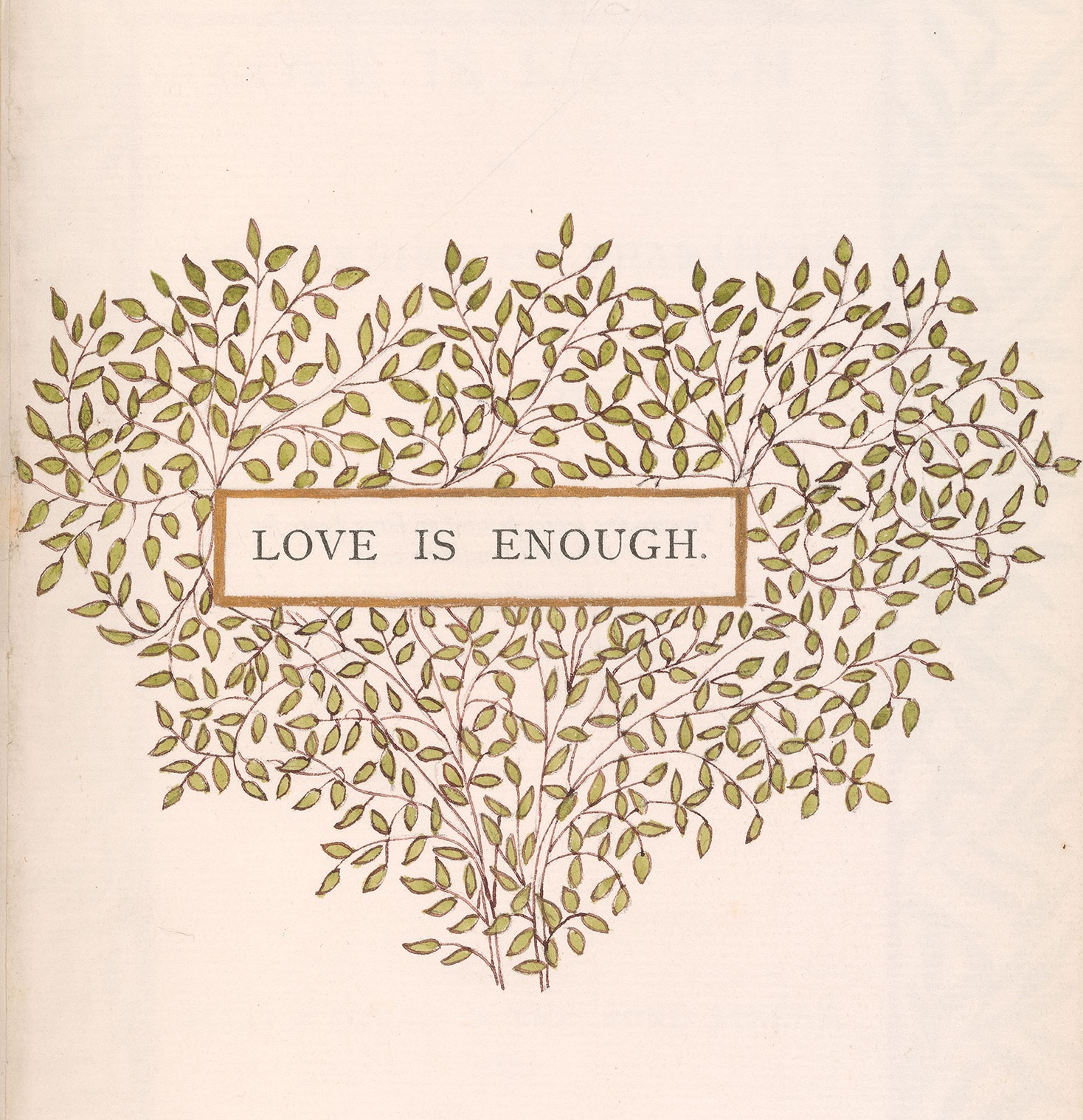 Love is enough, or The freeing of Pharamond : a morality. London: Ellis & White, 1873. See the whole book: The Morgan Library.