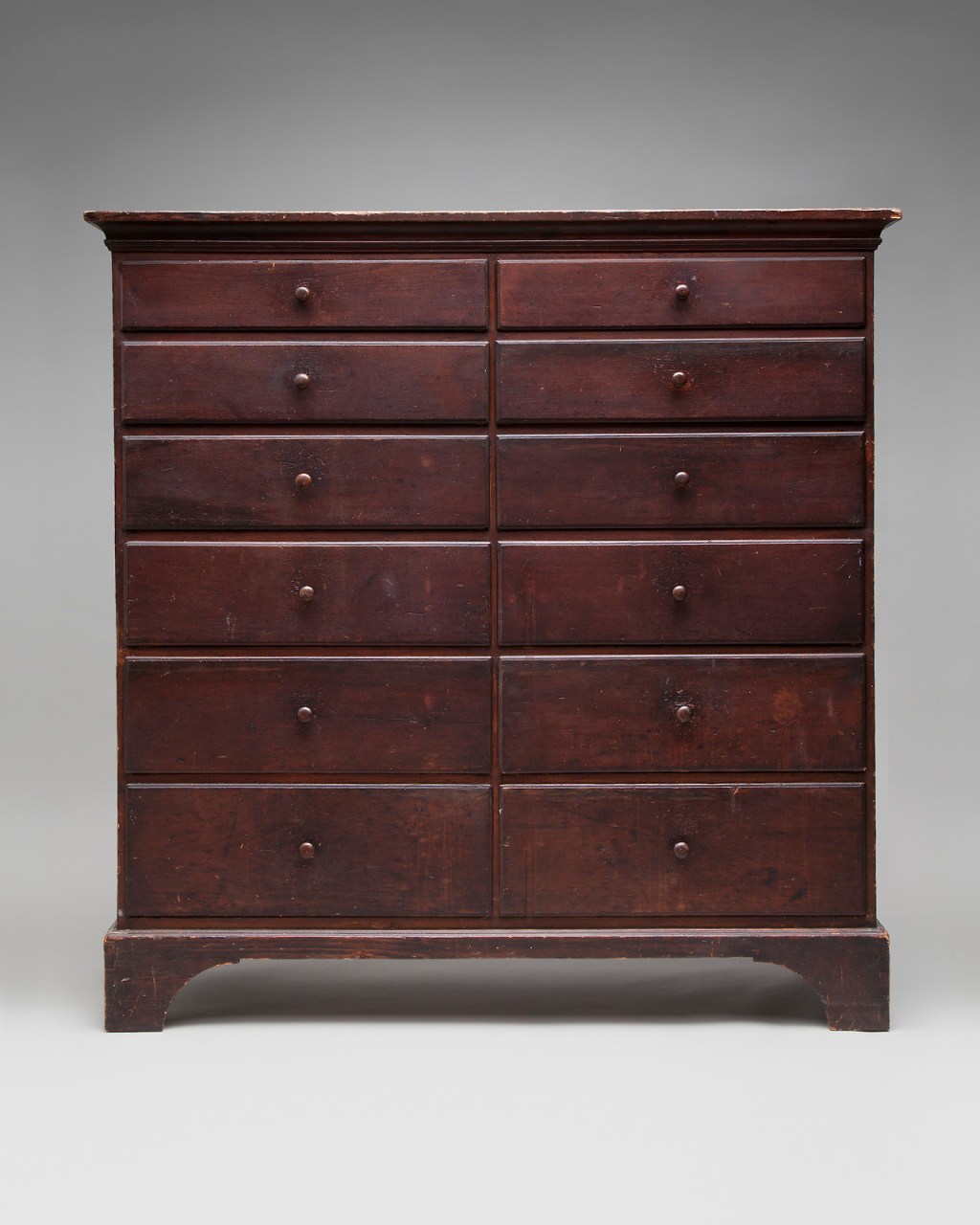 Shaker Design. Twelve-drawer chest, c. 1810. Mount Lebanon, New York. Made for the Community. Pine, Fruitwood, stain. Collection of Benjamin Rose, San Francisco. Photo SFO Museum.