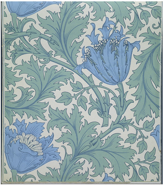 William Morris, Anemone wallpaper, Morris & Co., Colour machine print on paper, Victoria and Albert Museum.