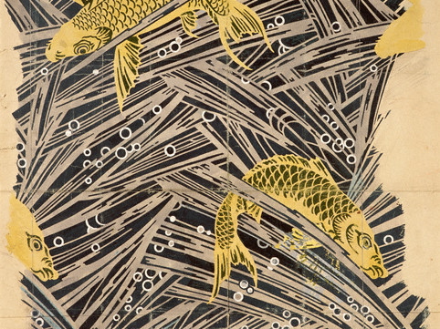 Koloman Moser, fabric design. Stoffentwurf “Forellenreigen für Backhausen” Bristol Hotel in Bolzano, 1899