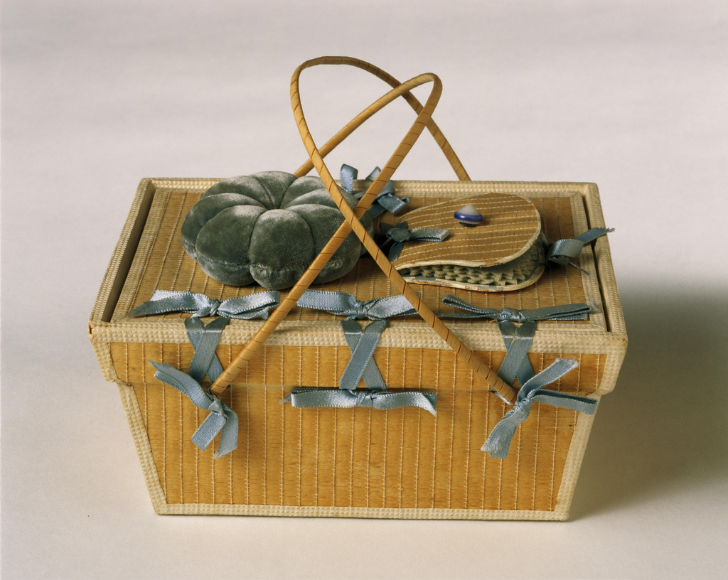 Shaker Design. The Poplar Sewing Box was an “industrial” product, sold to the world. Mount Lebanon, NY. Woven poplar, paper, ribbon, velvet, felt, wax, emory.