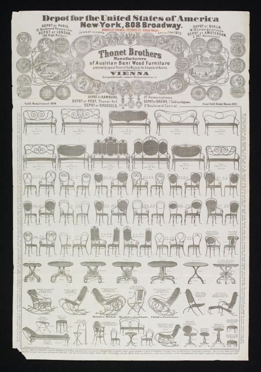 Thonet Brothers, Manufacturers of Austrian Bent Wood Furniture. Depot for the United States. Advertising Broadsheet, 1873