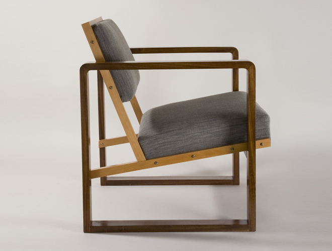 Josef Albers, Club Chair from Oeser’s Home, 1928. Mahogany veneer, beech wood, maple, with flat cushions. Bauhaus Archiv Berlin, Photo Barsch © VG Bild-Kunst, Bonn, Germany