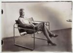 Below: Photo Erich Consemüller, from 1926. Either Bauhaus weaving graduate Lis Beyer or Ise Gropius, wife of Director Walter Gropius is sitting on the Wassily chair. She is wearing a skirt designed by Beyer and a theatre mask by Bauhaus teacher Oscar Schlemmer.