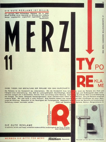 Kurt Schwitters, Cover of Merz 11, 1924. Die gute Reklame … ist billig. (Good advertising.) Source