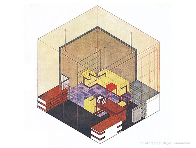 Gropiuszimmer – Direktorenzimmer /Gropiusroom, directors room, Design Walter Gropius, Isometrie Herbert Bayer. Gropius couldn’t draw.