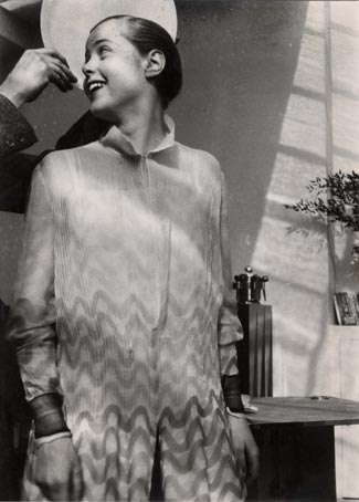 Le Corbusier puts a plate behind the head of Charlotte Perriand to resemble a halo, 1928