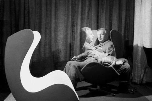 Arne Jacobsen on/in his swan chair.