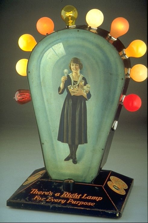 Edison Lamp Works of General Electric, advertising display light bulb box, 1923. There’s a right lamp for every purpose.