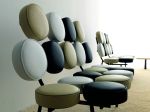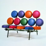 George Nelson and Irving Harper, a young designer working in Nelson’s design firm, were approached by an inventor who had created an injection plastic disc that he insisted could be produced inexpensively and would be durable. The designers took a look and arranged 18 of them on a steel frame—the origin of the Marshmallow sofa. The inventor’s cushions turned out to be impractical, but Nelson and Harper were intrigued by the design they had created so casually, and Herman Miller decided to manufacture the sofa. By joining separate elements and making them appear to float on air, Nelson and Harper achieved this sofa’s unique appearance and eye-catching appeal, which led the way into the pop art style of the 1960s. And by the way, that young designer—Irving Harper—also designed the famous Herman Miller company logo.