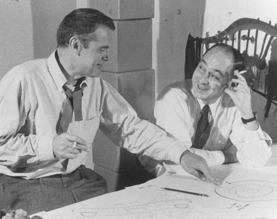 Charles Eames and George Nelson in conversation in 1959. Source.wallpaper.com