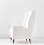 Gio Ponti, Armchair, circa 1948, Wingback chair, 1950s. Fabric, walnut.