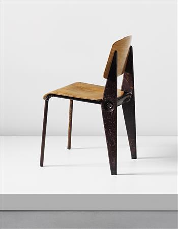 Jean Prouvé, rare demountable ‘Cafétéria’ chair, model no. 300, designed for the Air France Building, Brazzaville, 1952. Painted tubular steel, painted metal, moulded plywood. Manufactured by Les Ateliers Jean Prouvé, France.