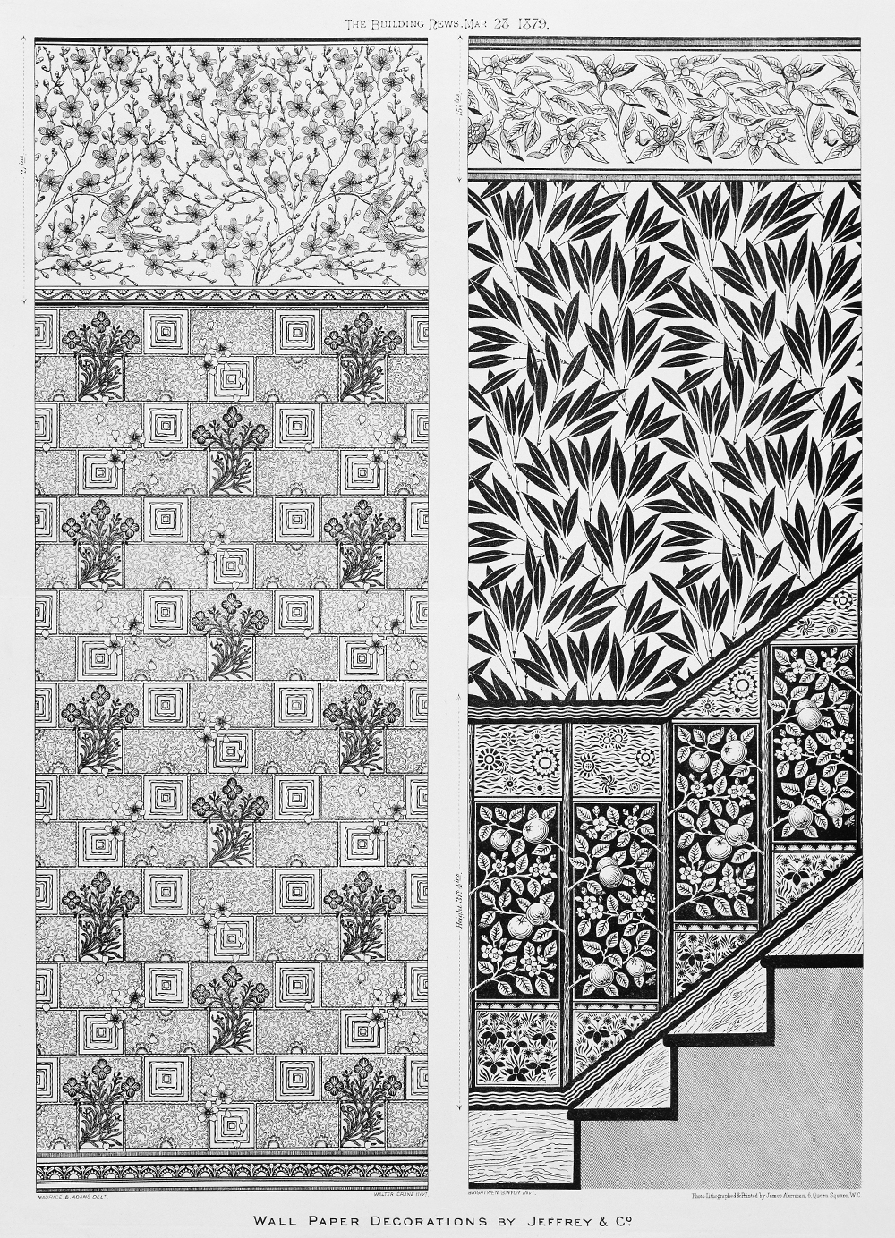 Illustration from ‘The Building News’, wallpaper decorations by Jeffrey & Co., 1879. Museum no. 29502D-60. © Victoria & Albert Museum, London