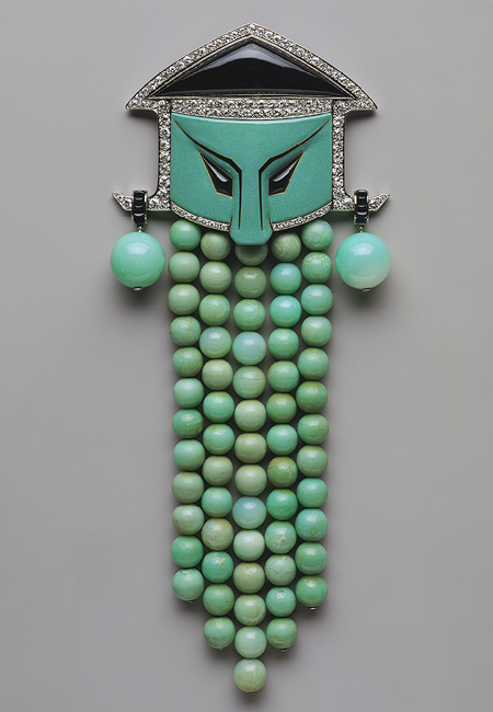 Dress ornament, ca. 1923. Georges Fouquet (French, 1862–1957) Jade, onyx, diamonds, enamel, platinum