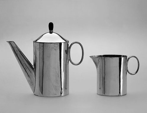Josef Hoffmann, Kaffeekanne und Milchkännchen, 1908. Alpaka, versilbert