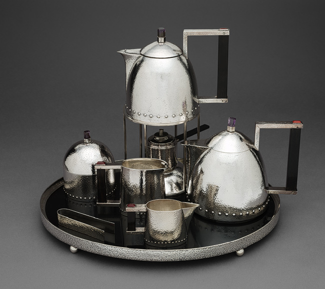 Josef Hoffmann, Tea service, ca. 1910. Silver, ebony, amethyst, carnelian