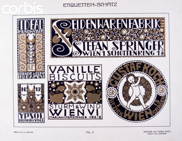 Urban Janke, Etiquetten-Schatz, Selection of labels, 1908, Wiener Werkstätte.