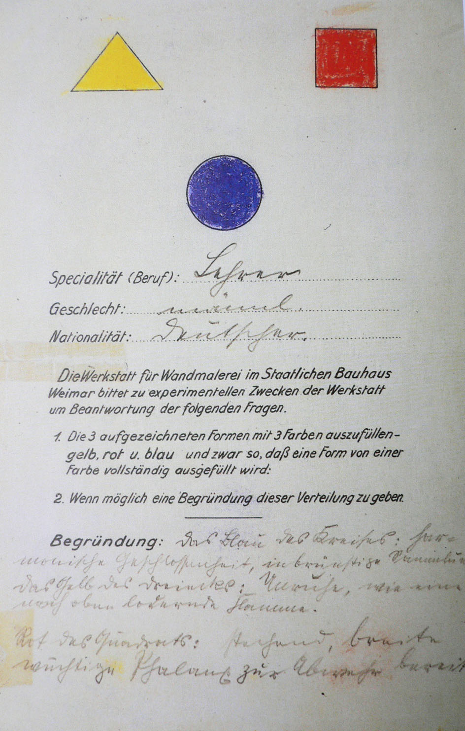 Wassily Kandinsky, Bauhaus questionnaire, 1923. Bauhaus Archiv Berlin.