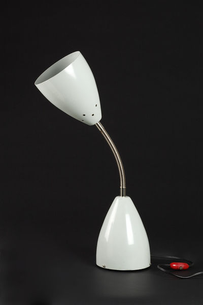 Max Bill, Höhensonne, Irradiation lamp, 1951. It consists of two identical cones of metal sheeting, one to house the lamp and the other the adaptor, with a flexible tube connecting them (which is also intended to act as a carrying handle).