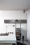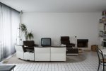 The house is something of a living museum. Look this way and that, and the eye will fall on one of Rams’s designs. In the living-room there is the 606 Universal Shelving System and the compact 620 seating system that he designed for Vitsoe in 1962. The dining chairs may be Thonet, but the 720 Round Oval dining-table (for Vitsoe, 1972) and the black leather recliner in one corner are further examples of his work. The television (Braun TV3), which features a screen whose horizontal angle can be adjusted, is by Rams, dating from Braun’s last hi-fi collection in 1986. So is the handle to the door that leads to a small kitchen just off this space; its 6ft-long serving hatch is used as a breakfast bar.