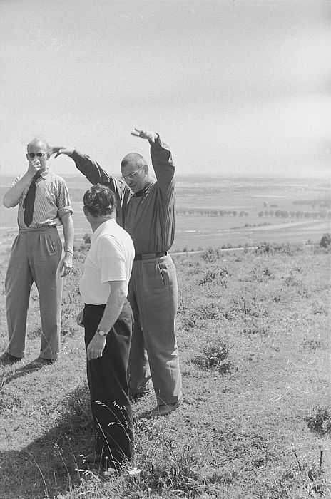 Max Bill dominating the group and dominating the landscape near Ulm, while inspecting a site to build the HfG. He did want to reincarnate as a Velociraptor.