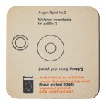 Braun beer mat, 1965. Advertising for the new Braun sixtant shaver with corresponding intelligence test. Which inner circle is bigger? Fitting tool for the target group.