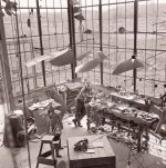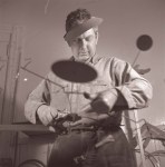 Calder by Matter. Publicity photograph for Pierre Matisse of Calder in his storefront studio, New York, 1936. View on Vertical Constellation with Yellow Bone. Calder with the mobile commission for the Hotel Avila Ballroom in Caracas, Venezuela, 1941. All photos by his close friend Herbert Matter. © 2013 Calder Foundation, New York