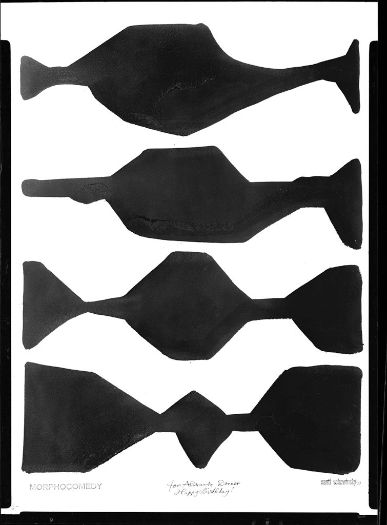 Xanti Schawinsky, Morphocomedy 1953 … for Alexander Dorner, Happy Birthday! Ink on paper. Alexander Dorner was an important museum director and museum expert.