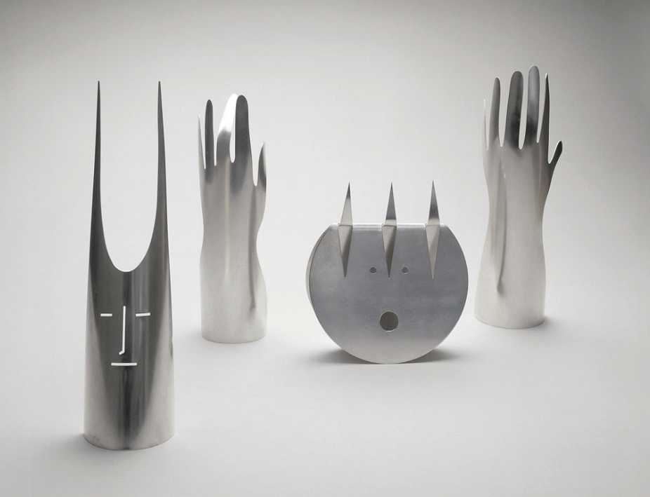 Gio Ponti, Bestiario Familiare, silver masks, 1978. © Gio Ponti Archives, Milano. “Maschera cornuta, mani e diavoli”, for Sabattini.