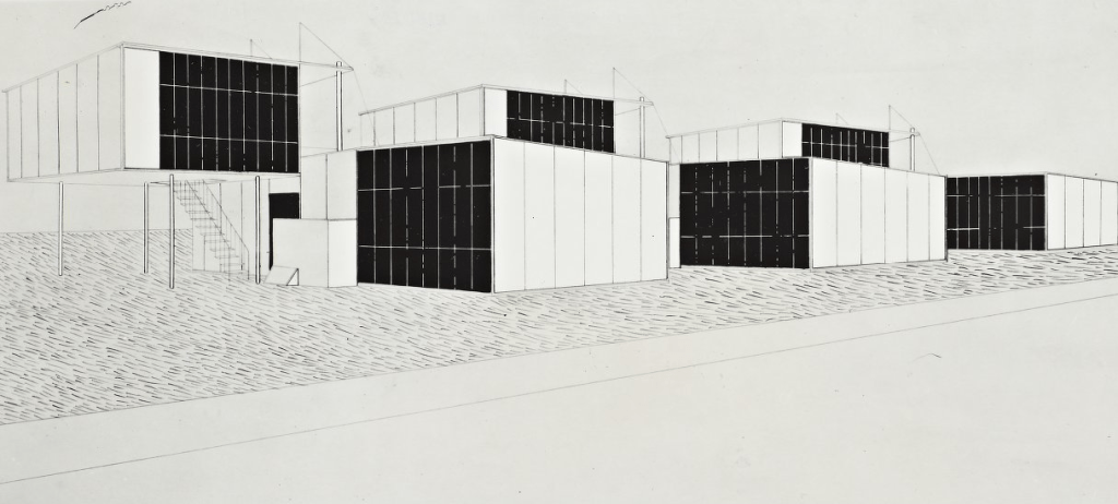 Marcel Breuer, perspective rendering, Bambos houses, Bauhaus Dessau, 1927.
