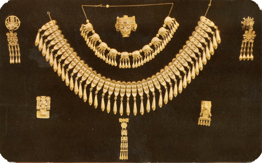 Reproduction of the famous jewels of Monte Alban. A postcard, Marcel Breuer sent to his sister in Vienna, when he was in Mexico, 1975