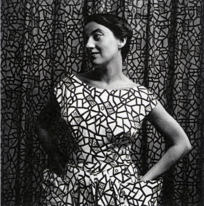 Eszter Haraszty, wearing the Fata Morgana Design, she designed for Knoll Textiles.