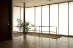 Ludwig Mies van der Rohe, Sketch & reality. Entrance hall, staircase with milk glass wall at Villa Tugendhat. (1928-30)