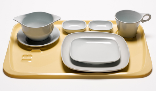 Wilhelm Wagenfeld, aircraft tableware for the german airline Lufthansa, melamine,1955