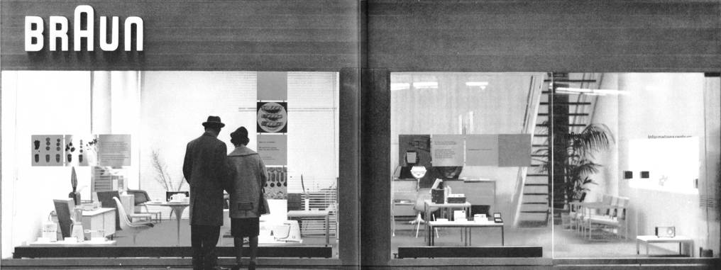 Braun, shop front in Frankfurt, Germany, spread of the company broschure,1967