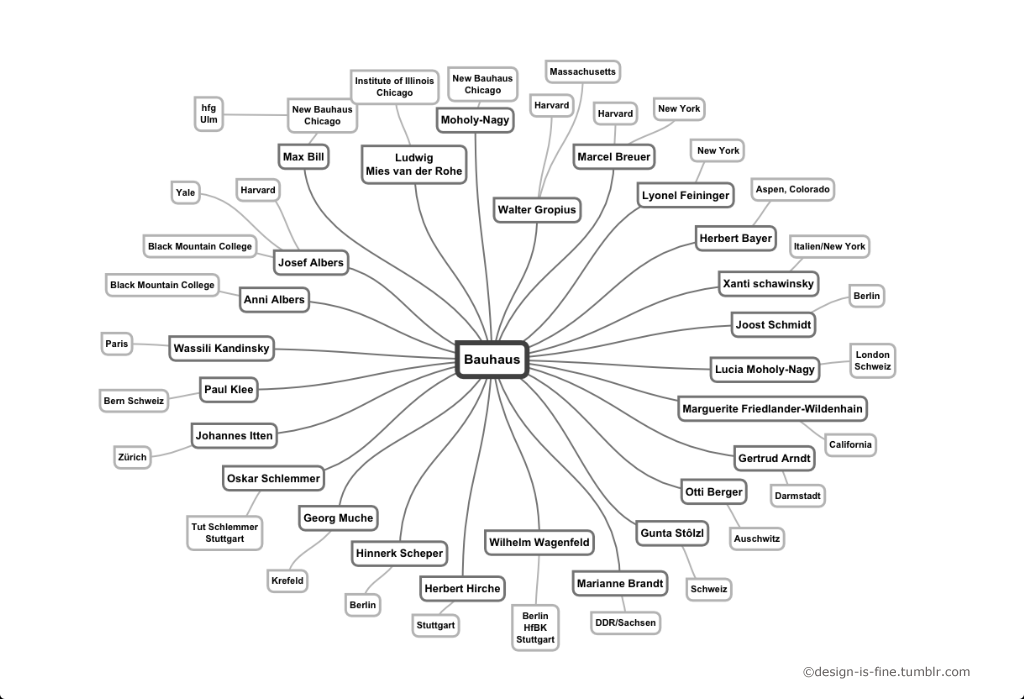 The Bauhaus Cast … and the later years. The whereabouts of Klee, Kandinsky, Stölzl, Gropius or Wagenfeld and the influence of teaching. Overview via mind map