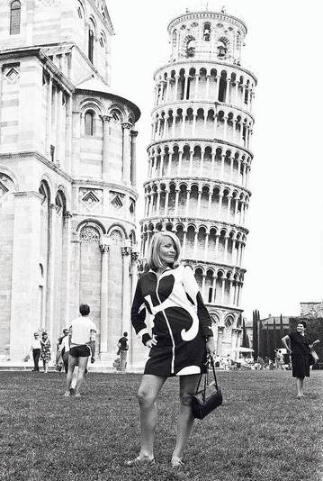 Alice Schwarzer posiert 1967 in Pisa. Das Kleid stammt von Marimekko. German feminist Alice Schwarzer very sexy and fashionable dressed in Marimekko.