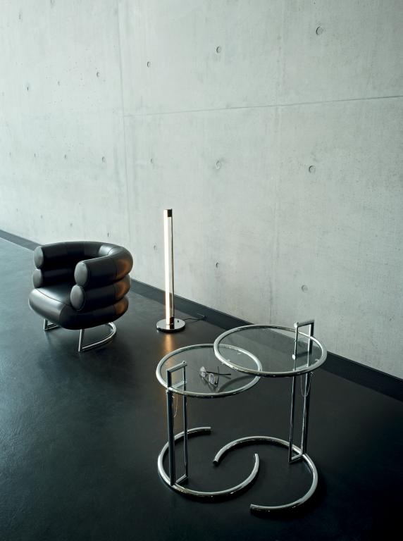 Eileen Gray and her design classics: Lounge chair Bibendum with TubeLight E1027 and adjustable table E1027, 1920s