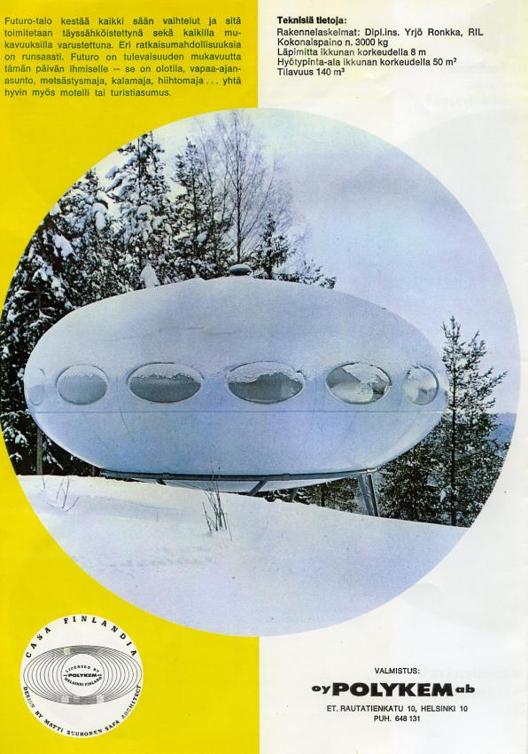 Advertising for the finnish prefab home Futuro by Matti Suuronen, 1965
