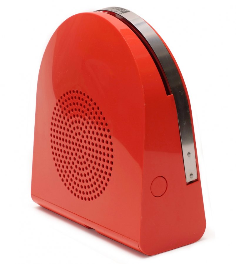 Dario & Mario Bellini, tragbarer Schallplattenspieler Phono Boy by Grundig | GA 45 Pop automatic record player Phono Boy, Minerva, 1968. The 45 single was inserted through the slit. With battery operation.