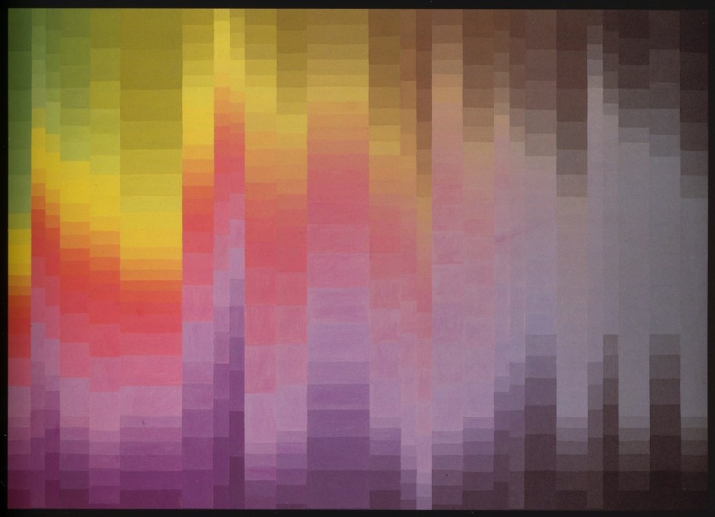 FARBSYMPHONIE / Komposition nach dem Volkslied: / «Das Leben welkt wie Gras, / wie Blumen auf der Flur. / Doch wenn der Wind darüber weht, verschwindet ihre Spur.»