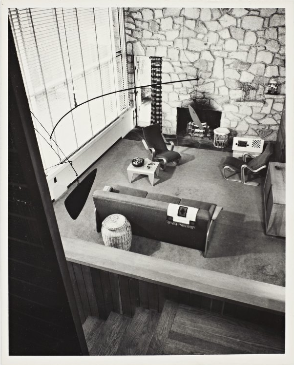 Living Room of Marcel Breuer’s house in Lincoln, MA, 1939. Calder mobile included. Photo: Ezra Stoller.