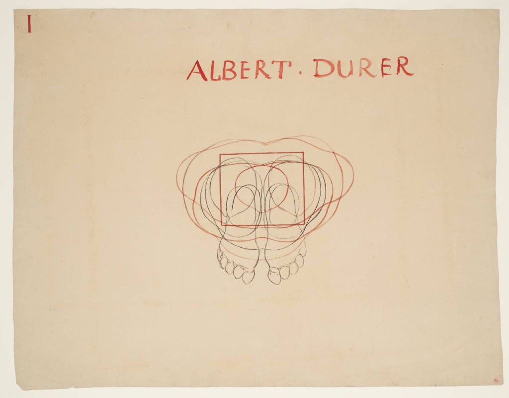 As Professor of Perspective at the Royal Academy, Turner began Lecture 1 with a discussion of how the rules of geometry “may be admitted to aid the bones of art, namely anatomy”. Based on an illustration from Four Books on the Proportion of the Human Body (1528) by Albrecht Dürer, Turner’s first diagram is “a plan of a figure viewed at the feet horizontally, each circle is that which a horizontal section would produce at different well known heights and proportions”. Source: Tate. More to see and read: Socks Studio
