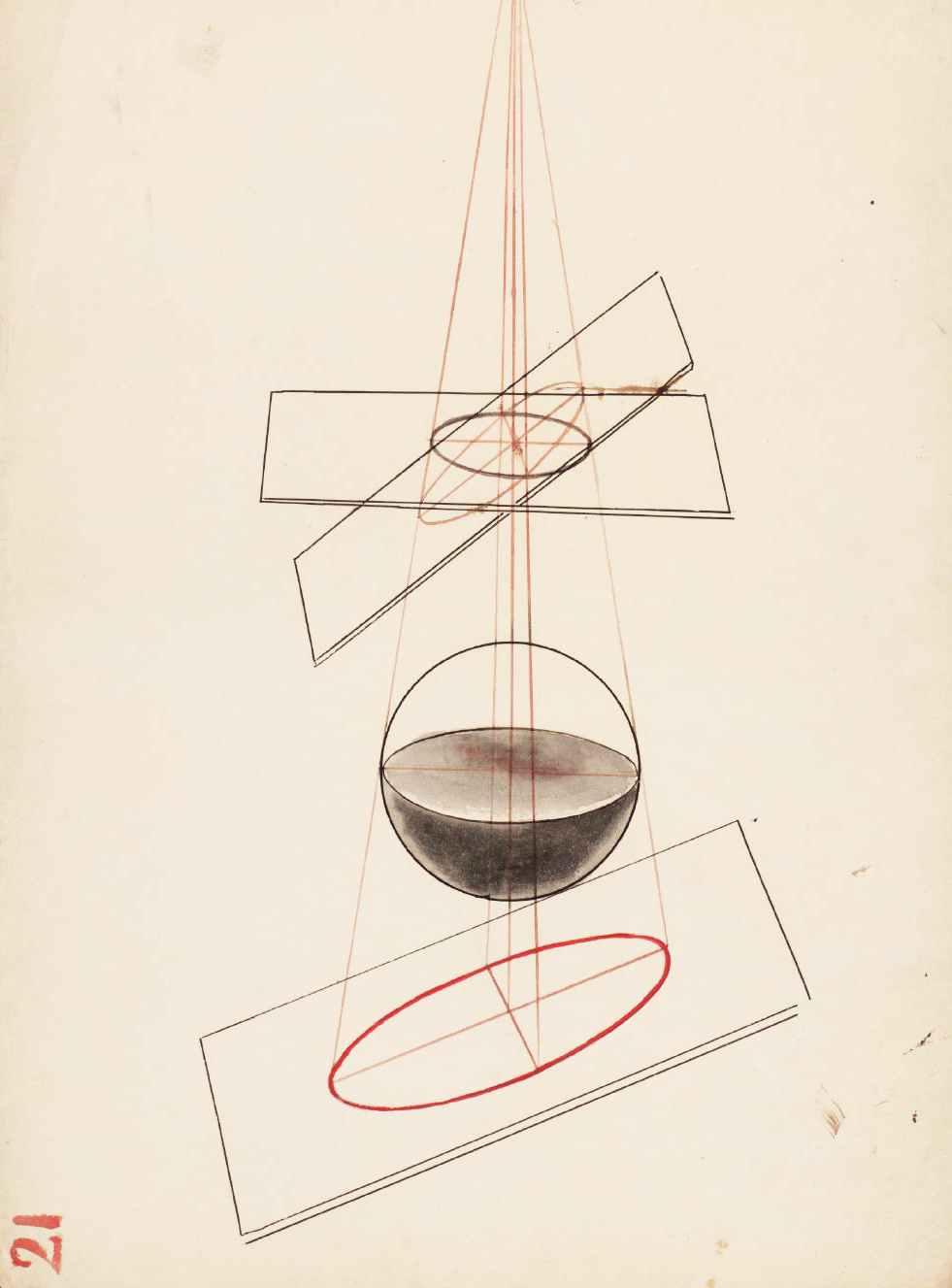 Lecture Diagram 21: Representation of a Globe in Perspective (after Thomas Malton Senior), 1810. Turner is adapting a passage from the elder Thomas Malton for his own teaching.