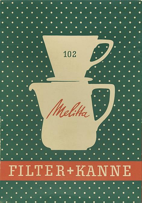 20 Jahre lang arbeitete Jupp Ernst für Melitta. Von ihm stammen nicht nur viele Produktentwürfe, sondern auch grafische Arbeiten, so die in der farblichen Grundstruktur heute noch verwendete Kaffeefilter-Verpackung.