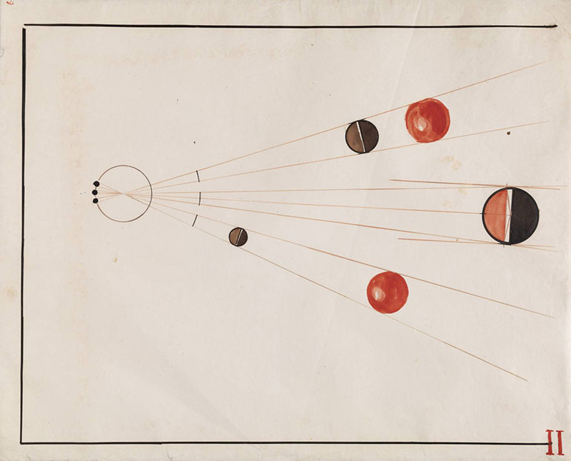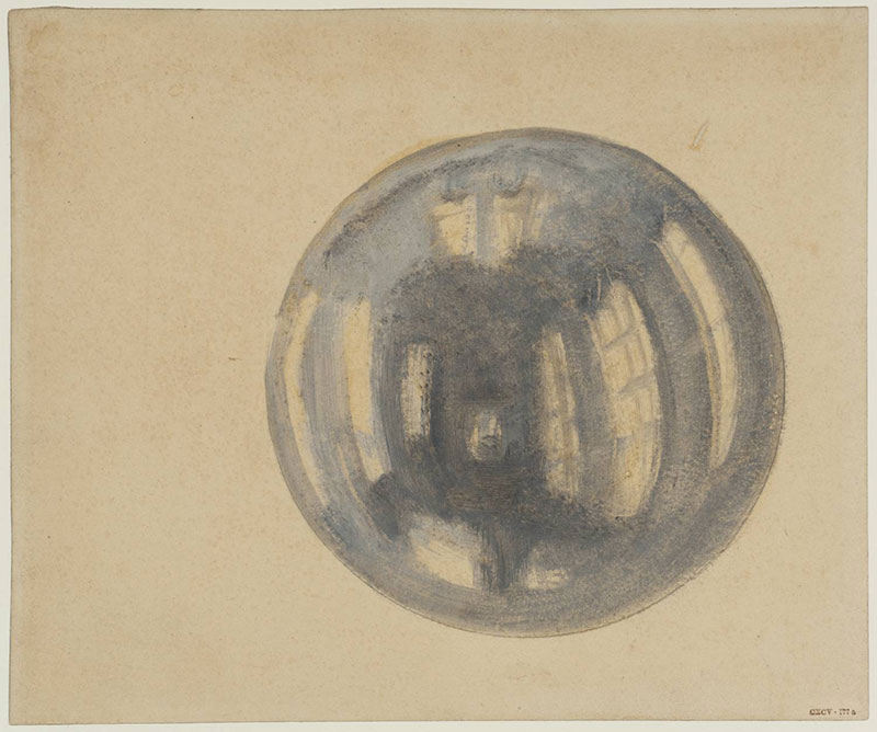 William Turner, Lecture Diagram: Reflections and Refractions in a Transparent Globe Half-Filled with Water c.1810.