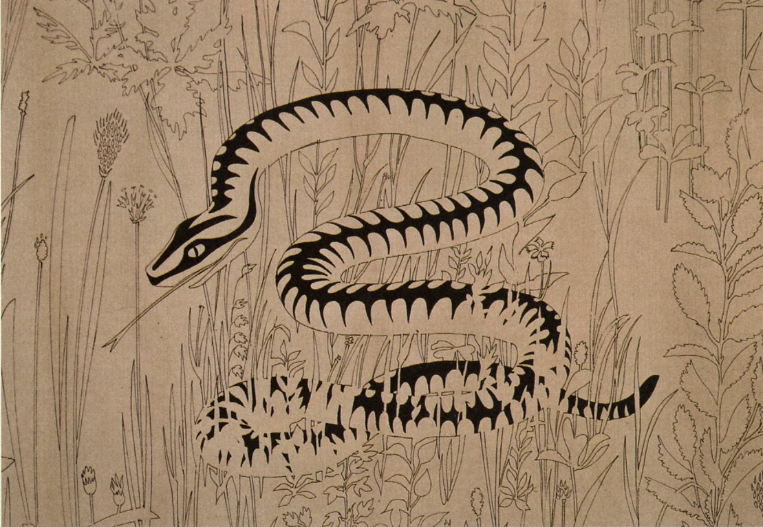 Iela Mari, italian artist and wife of Enzo Mari, Animali nel prato, detail. Originally a design for a fabric for children’s pillows.