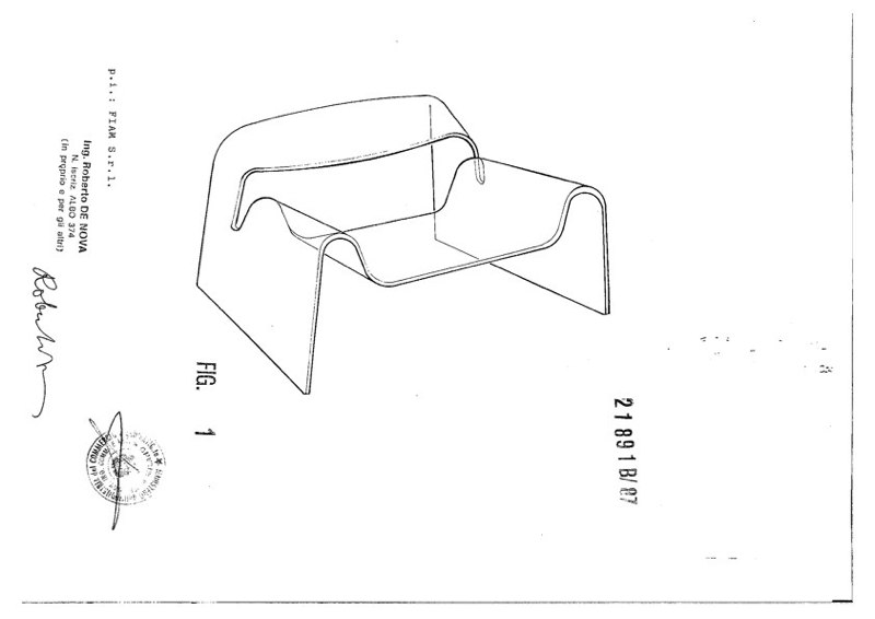 Cini Boeri sitting on her armchair Ghost, 1987. Moulded glass, Fiam. Source Photo Boeri